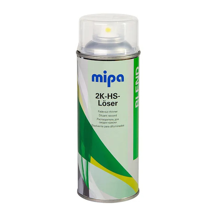 The Mipa 2K-HS-Löser Spray is a specialized solvent-based aerosol designed to seamlessly blend overspray edges and transition zones during automotive refinishing. This high-performance product is essential for achieving flawless spot repairs, ensuring that the boundary between old and new paintwork is virtually invisible.
