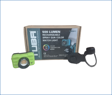 The Tuba High CRI 500 Lumen Rechargeable Spray Gun Color Match Light is a compact, high-performance tool designed for accurate paint color matching during spray applications. With a powerful 500-lumen output and CRI 95+ at 4000K, it simulates natural daylight for precise color accuracy. It mounts easily on most spray guns, features a 360° swivel head, and includes a motion-sensor on/off function for hands-free operation. Lightweight, solvent-resistant, and USB-C rechargeable, it delivers up to 3 hours of runtime—ideal for professional painters seeking consistent, flawless finishes.