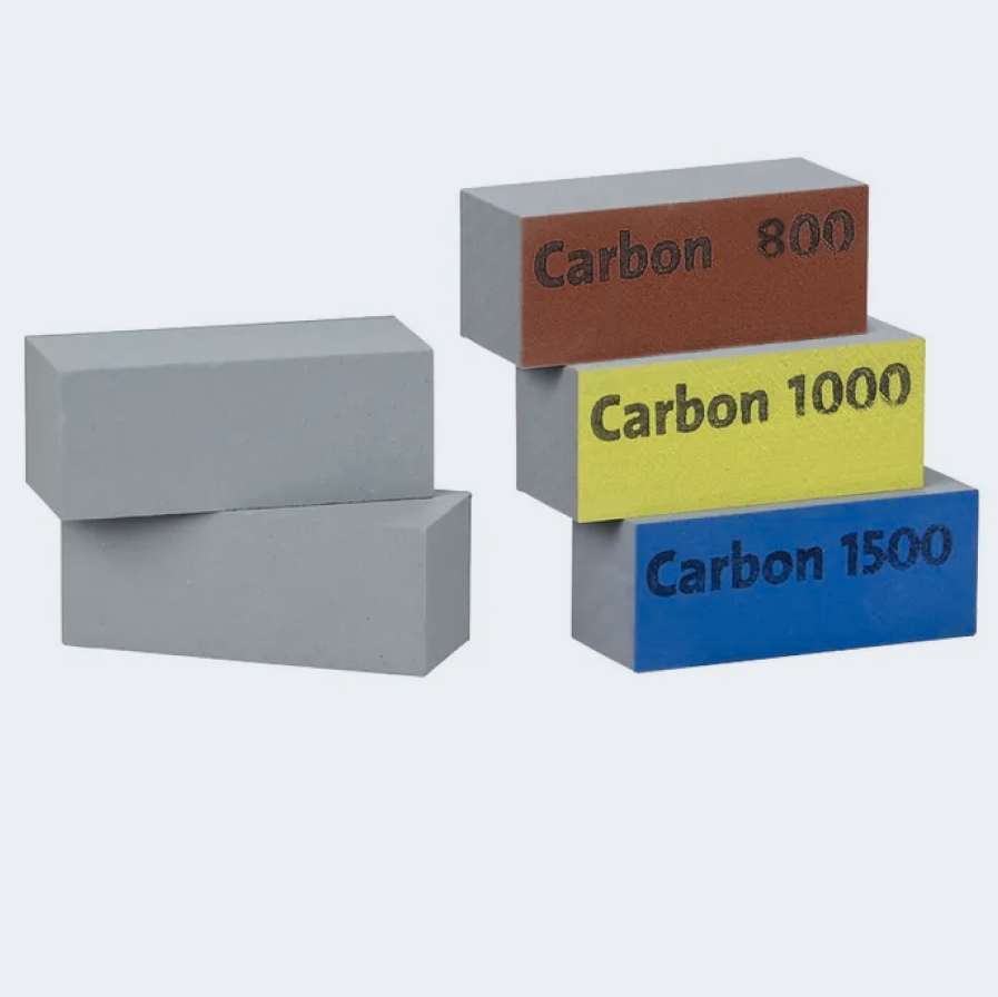 Durable sanding blocks are designed to even surface preparation, allowing flat, controlled sanding on various surfaces. Options: P800 (Red), P1000 (Yellow), P1500 (Blue), P3000 (Green)